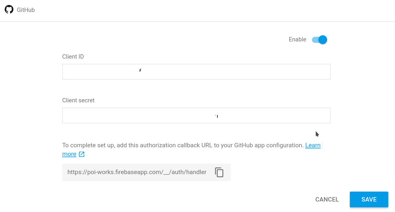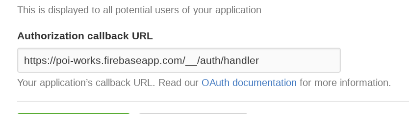 注意到下面地址了吗?那个就是我们的回调地址,保存好 Firebase 这边的设置之后。我们需要回到 GitHub,把回调地址改成 Firebase 提供给我们的那个:
