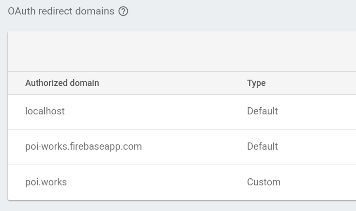 为了安全,Firebase 限制了只有通过认证的域名才可以通过完全整个用户认证的过程。默认的认证的域名只有 localhost 和你项目的默认地址。